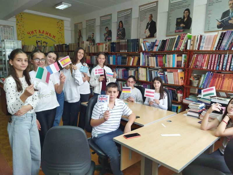 У школској библиотеци смо 26. септембра обиљежили Европски дан језика. Инспирација за обељежавање овог догађаја, био је овогодишњи слоган „Језици отварају срце и ум“. Наши ученици седмих, осмих и деветих разреда представили су неки од европских језика. Наиме, свако од њих је говорио језик који су сами изабрали. Међу представљањима била је чак и пјесма Јована Јовановића Змаја „Ал je леп овај свет“ на италијанском језику. Циљ часа је уочавање шареноликoсти језика европског континента. Језичка разноликост обогаћује комуникацију и културу. Закључили смо да познавање нових језика омогућује учење нових ствари и уважавање културне разноликости Европе.