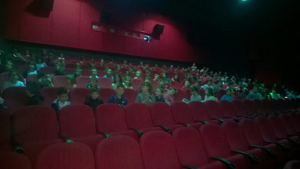 Ученици I, II, и III разреда су са својим учитељима, 30. марта, у биоскопу „Палас“ погледали филм – Штрумфови: Скривено село, у 3D технологији.