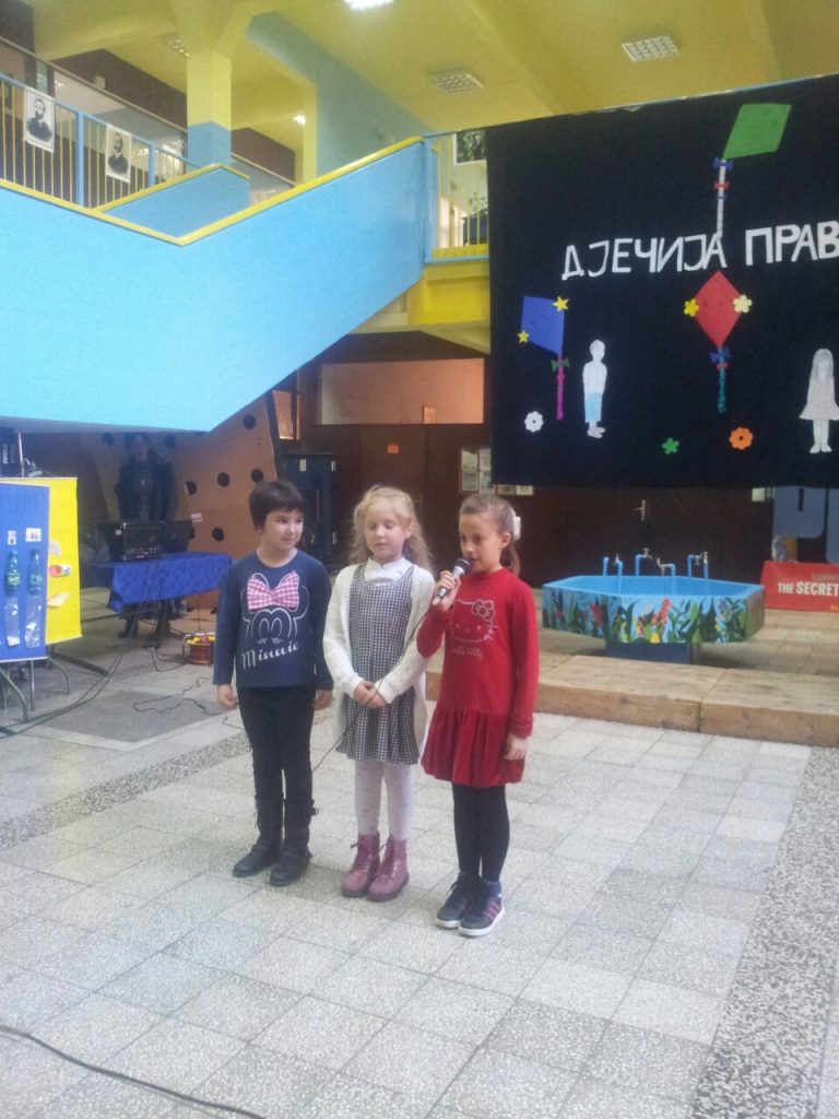 У нашој школи су ученици узраста од I до V разреда, пригодним програмом обиљежили Свјетски дан дјетета тако што су скренули пажњу на своја права. Свјетски дан дјетета, 20. новембар, обиљежава се са циљем да се укаже јавности на све обавезе које друштво има према дјеци као и на најважније проблеме са којима се дјеца суочавају.