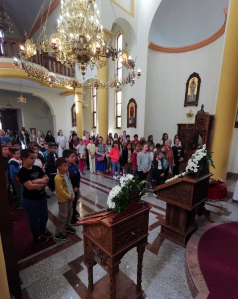 Ученици трећег разреда са учитељицама и вјероучитељем, данас су присуствовали и учествовали у Св. Литургији храма Успења Пресвете Богородице. Литургија је одржана поводом Великог и Часног поста.