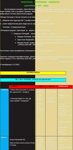 Наш, Алексеј Николић, ученик који је успјешно завршио први разред код учитељице, проф. Гордане Куртијак, је вриједан и на распусту. Похваљен је за учешће на Међународном литерарном конкурсу „Шантићеви дани“.